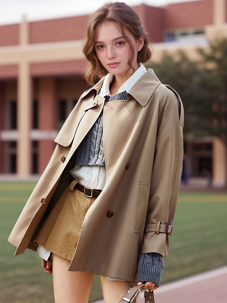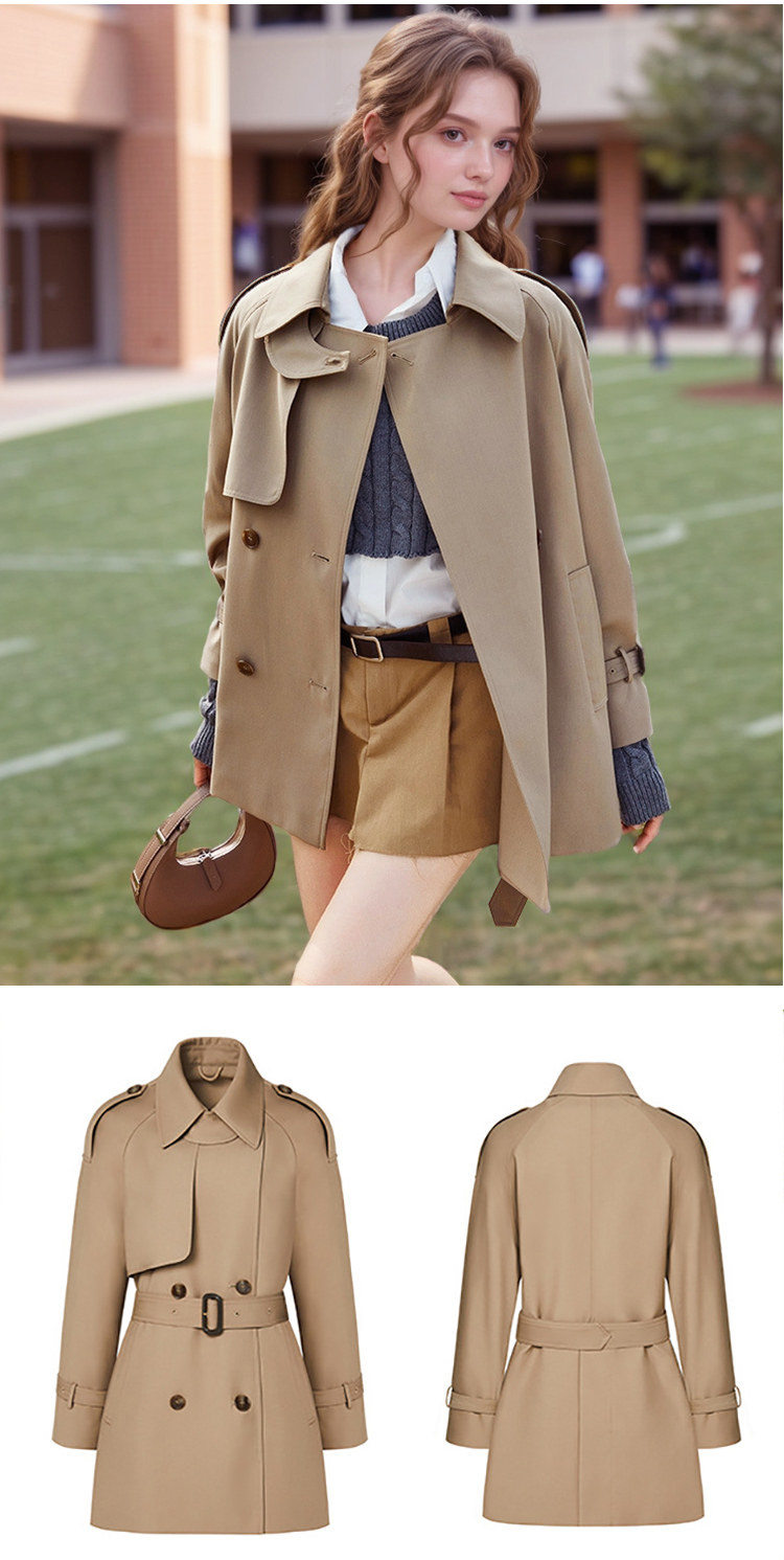 / 2024 Fall Fashion Casual Short Trench Coat Khaki