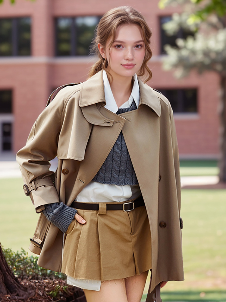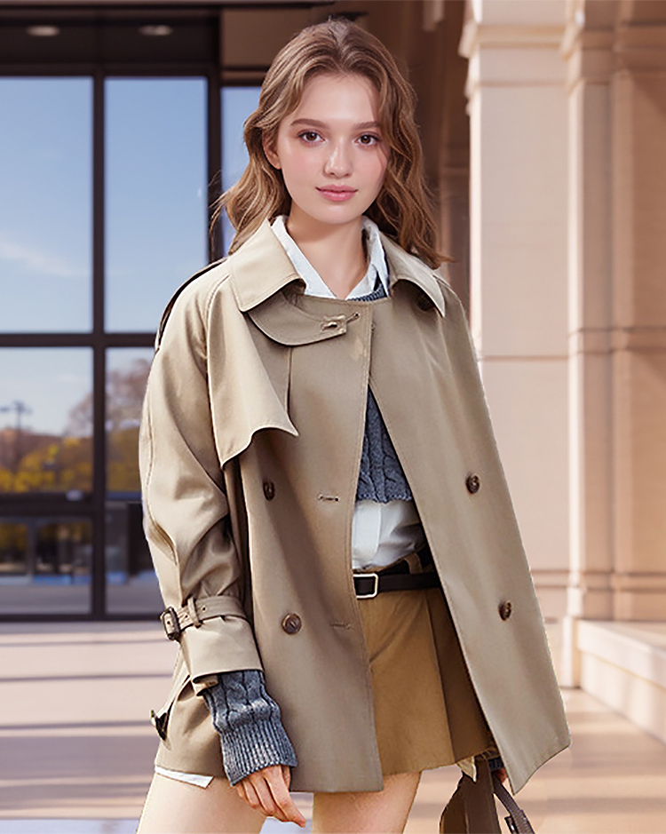 2024 Fall Fashion Casual Short Trench Coat Khaki
