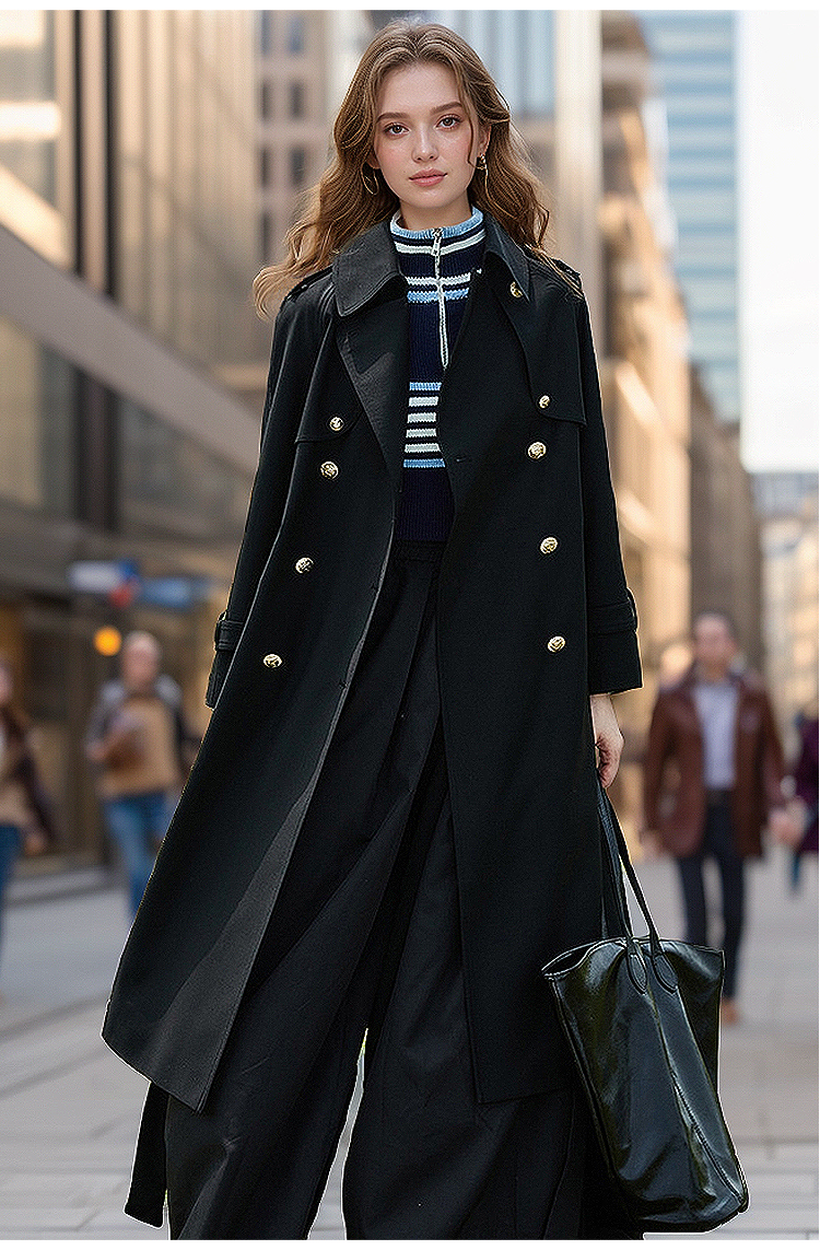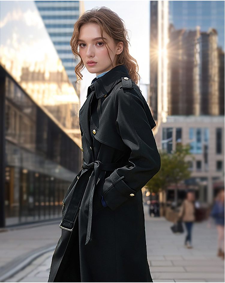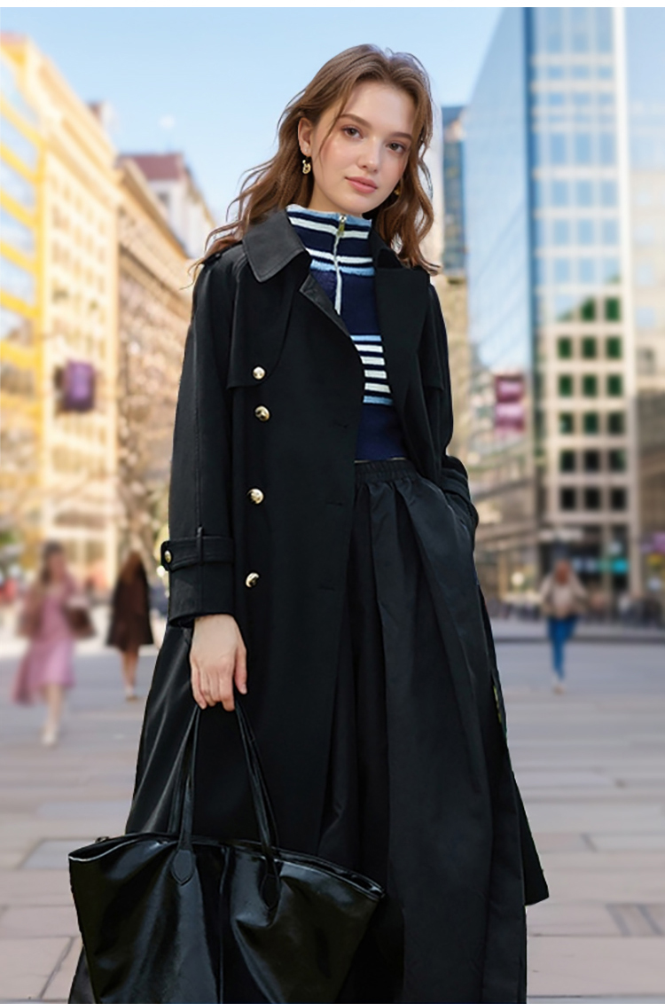 2024 Spring And Fall Over The Knee Mid-Length Classic Trench Coat Women's Black