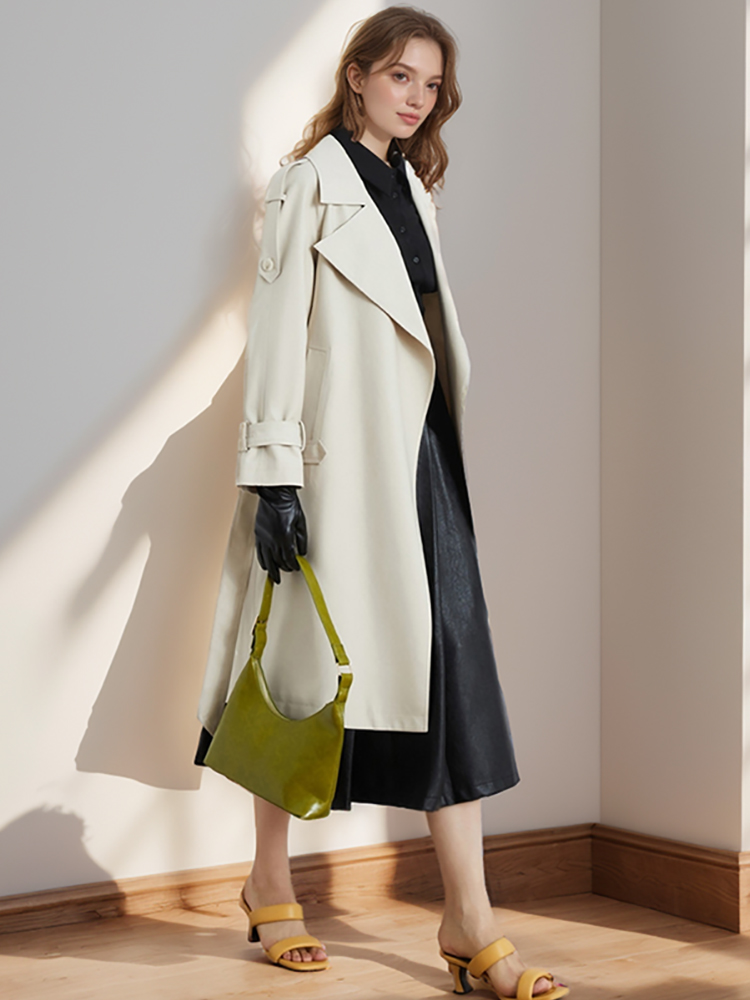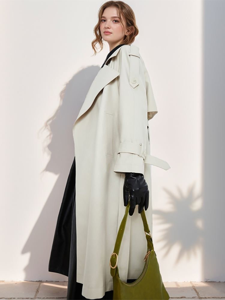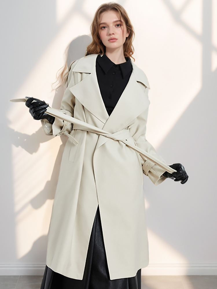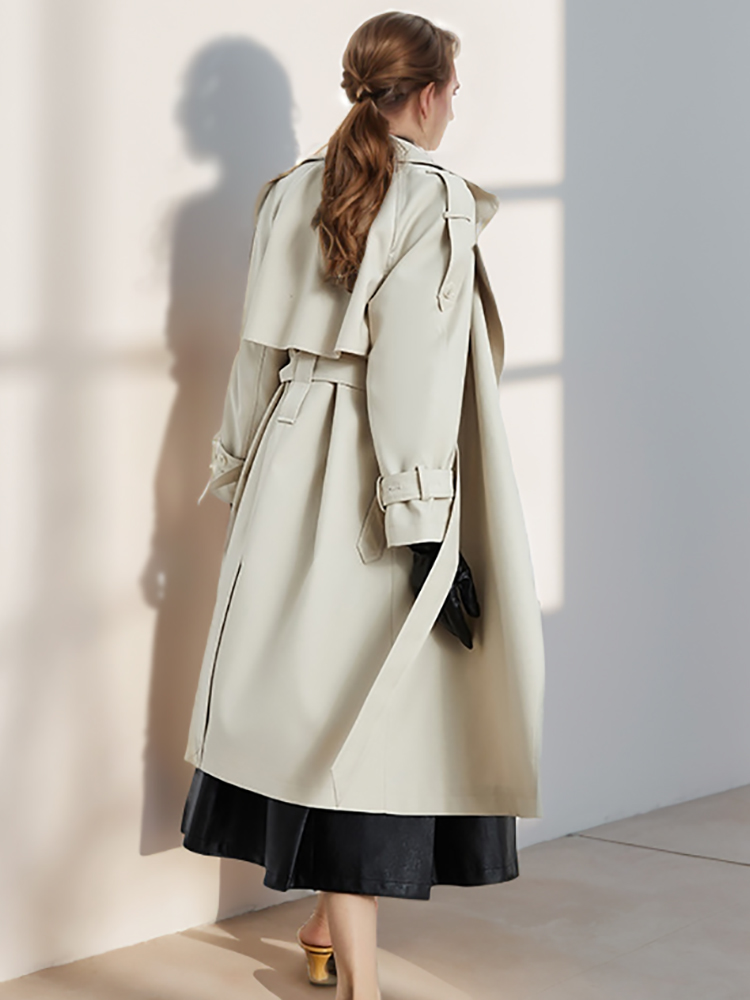 Beige Super Beautiful Drape Long Windbreaker Women 2024 Autumn New Style High End Temperament Casual Big Brand Jacket