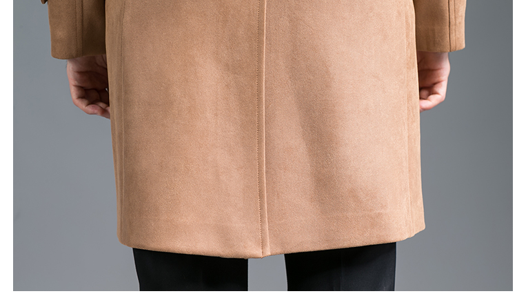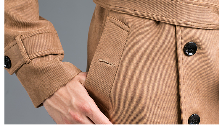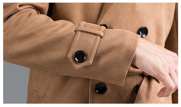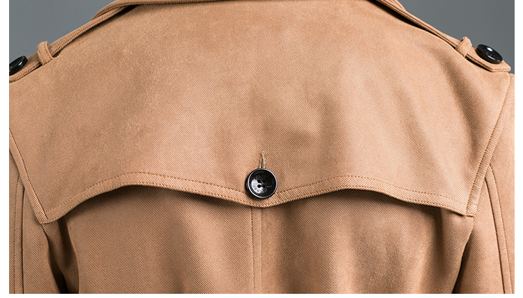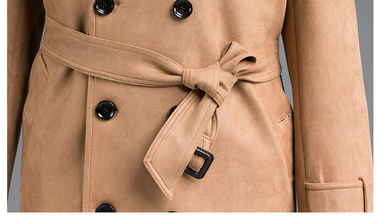• DEERSKIN VELVET FASHION SLIM-FIT DOUBLE BREASTED MID-LENGTH TRENCH COAT CAMEL