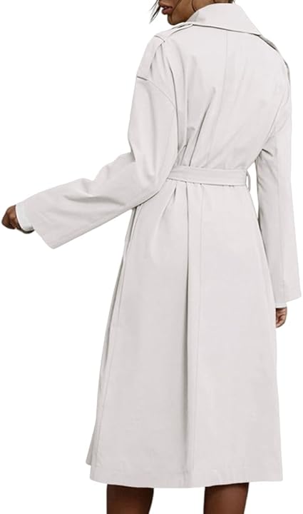 New Women's Double Breasted Long Trench Coat Lapel Mid Length Jacket with Belt Coat
