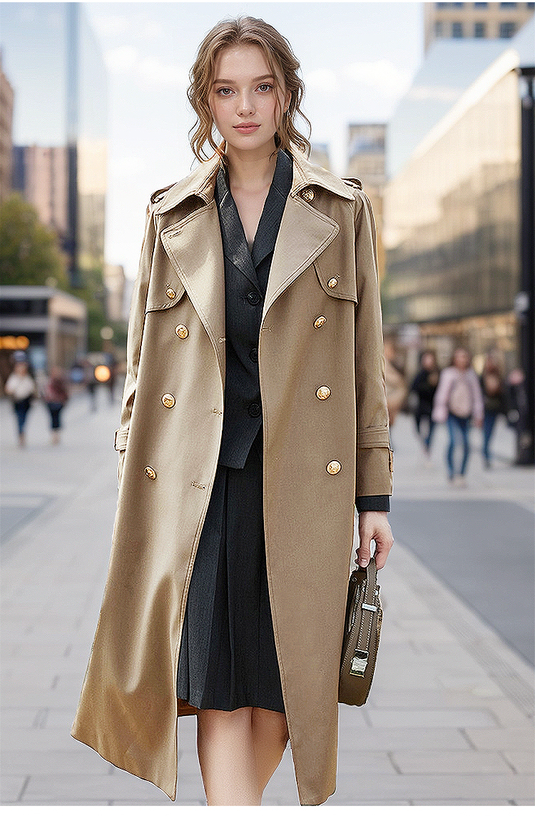 / Spring Fall 2024 Knee-Length Classic Trench Coat Women's Khaki