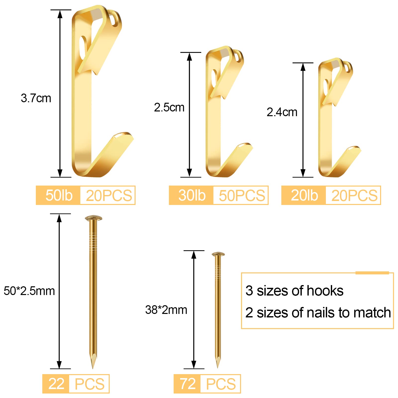 Reliable thickness: The main body of the picture hanger is thickened, which is more durable. If the wall is hard enough, it is good to hang some light things. The nails are not easy to bend, and it is easy to hang the sundries firmly on the wall. The picture hanger is small and practical, easy to recycle, and only leaves a small hole. Product ReviewsRecently Viewed