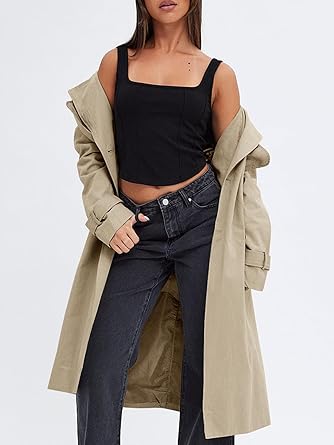 Made from premium 100% polyester, this womens windbreaker is extremely durable. Carefully crafted stitching adds a touch of sophistication. The lapel and button closure are both stylish and windproof. Use the belt to easily switch between casual and feminine. Product ReviewsRecently Viewed