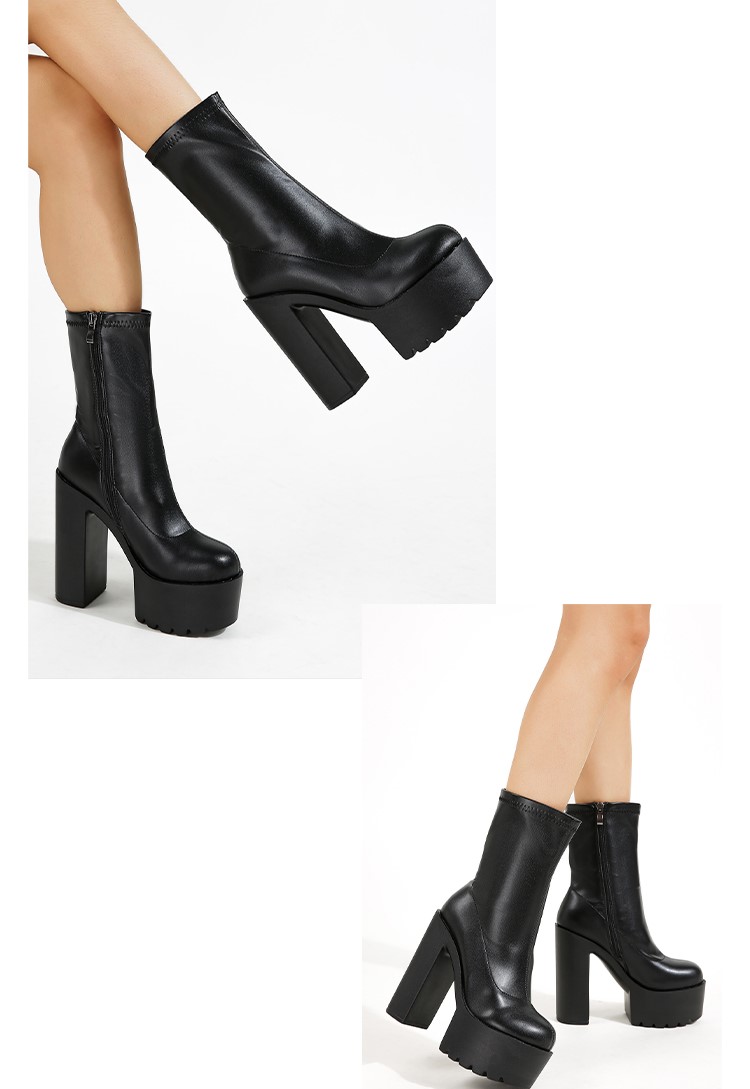 Slip on these chunky platform booties to lengthen and accentuate your legs for a flattering look.