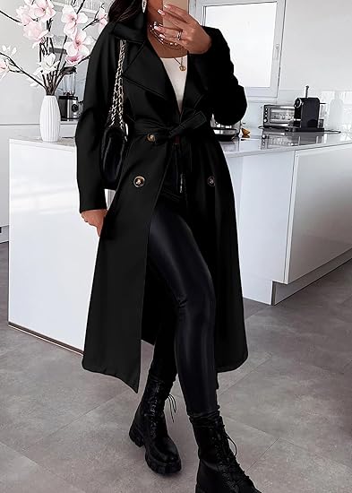 Women S Trench Coat Long Double Breasted Spring And Autumn Fashion 2024 Classic Lapel Coat Jacket With Belt
