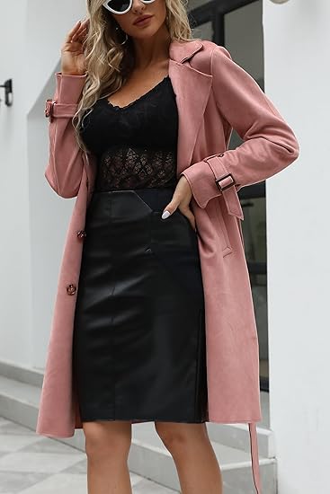 Women's Faux Suede Jacket Spring Winter Fashion Long Windbreaker Lightweight Windbreaker